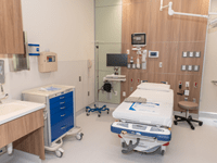 The new emergency department expanded from 12 to 20 spacious, modernized patient rooms to provide a full range of capabilities, including a trauma treatment bay to expanded rooms designed to care for trauma and cardiac patients