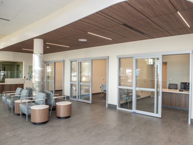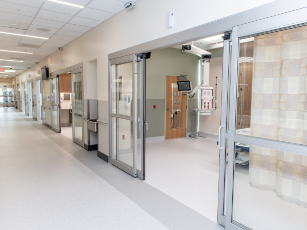 Along with the upgrades to the emergency department, the new hospital entrance includes a covered drop-off and pick-up zone to shield patients and their families from the weather as they enter the facility.